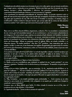 Bajo cero de Zoila Capristan no es solo la ópera prima de muestra el manejo diestro de la palabra por parte de una poeta ya cuajada, sino un gran aporte a la reciente poesía peruana escrita no solo por mujeres. Libro río, que se presta a varias lecturas: tumultuoso, poliédrico, incandescente como es la vida contemporánea. La poeta ha volcado las visiones de una realidad fragmentada, convulsionada y dramática, pero bajo este velo (que roza con lo absurdo kafkiano) ha plasmado una historia lírica, en donde palpita una voz soterrada (canto villano) que hace contrapunto con esa otra voz mayor (brechtiana). Es decir, hay dos tonos que obedecen a dos planos: el del mundo interior (representado por la tumba intemporal de la muerte o la memoria) y el exterior de lo contingente (el mundo apocalíptico de hoy, la convivencia entre guerras e injusticias).