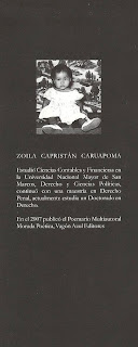 Es por ese camino por donde marchan nuestros esfuerzos. Y es así que, tras la publicación del poemario multiautoral Morada Poética (2007), EDITORIAL VAGÓN AZUL se honra de presentar al público esta nueva obra: Bajo Cero, de Zoila Capristán, que reúne la poesía forjada durante años de trabajo, expresión de energía y pasión creativas. La integridad de estas páginas revela un auténtico compromiso con el quehacer literario, y las constituye en una edición de lectura imprescindible para quienes se complazcan ante todo ejemplo de sensibilidad bien formulada, y quien preste mirada atenta a la escena de la literatura en el Perú y las voces que van aflorando.